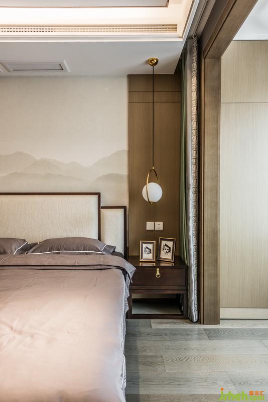 主臥從色彩搭配和材質(zhì)面料的選擇上,都十分的考究。,整體的色系采用溫暖的低飽和度顏色作為搭配,,結(jié)合不銹鋼線條的搭配,,讓整個(gè)空間充滿氣質(zhì)感。