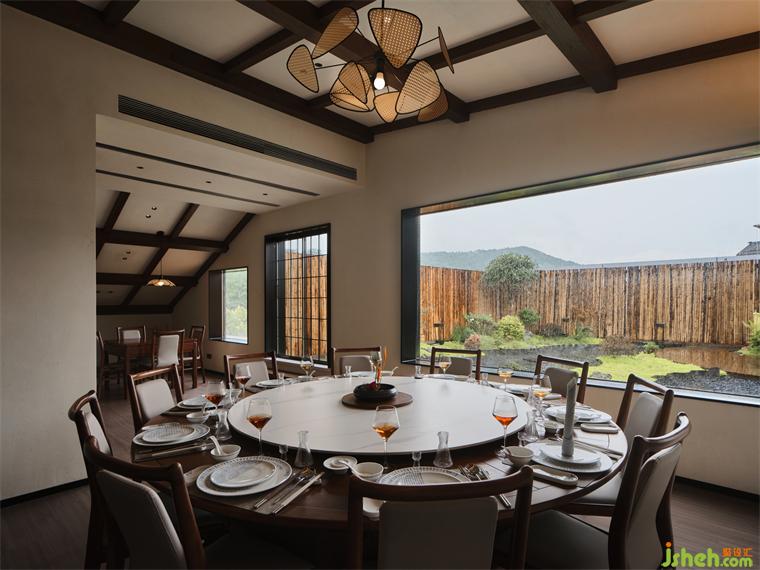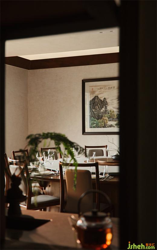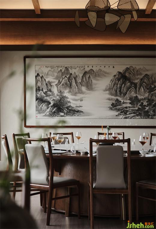 一山一水,積蘊(yùn)了數(shù)千年的東方哲學(xué)思想,一食一飲,品的是文人的雅聚?!吧诫S宴坐圖畫出,水作夜窗風(fēng)雨來(lái)?!鄙剿?,大物也,于是,便成了中國(guó)人獨(dú)有的世界觀,便成了中國(guó)文化特有的美學(xué)藝術(shù)。會(huì)所設(shè)計(jì)用大開大合的手法塑造出屬于東方宴飲文化的建構(gòu)格局與形式特色,在密林深處,觀照東方美學(xué)之鏡,返溯中式山水之根基。