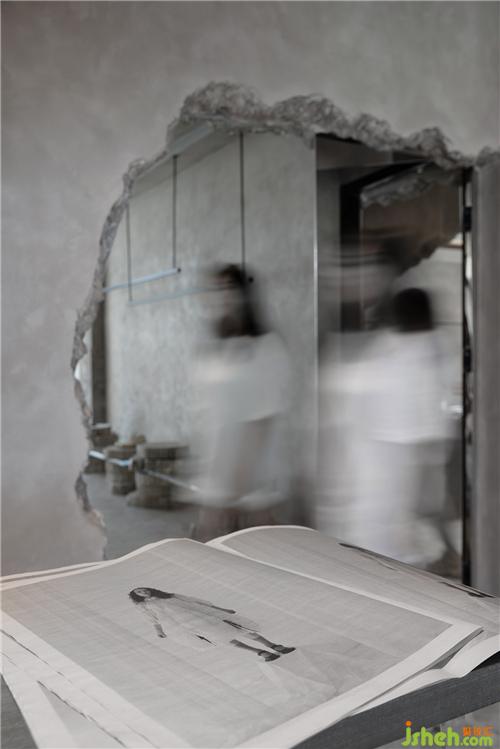 △ 鏡面與斑駁的墻相結(jié)合,仿佛裂開的時(shí)空隧道,空間與空間之間的交接