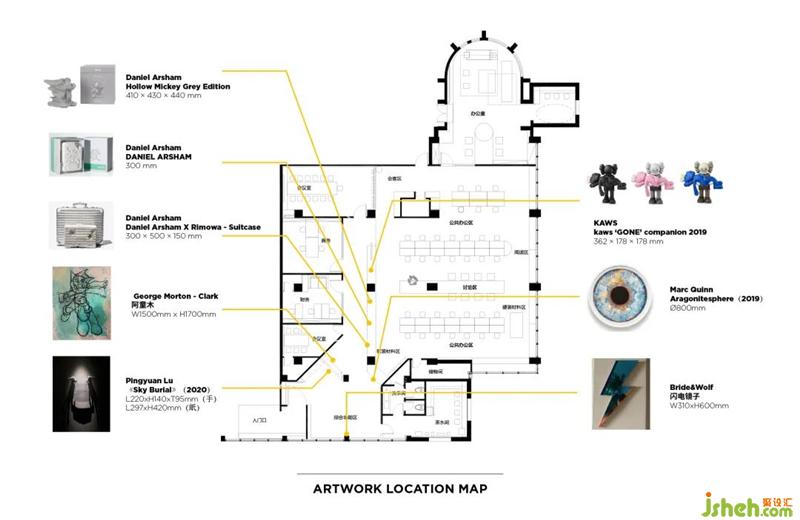 不同的區(qū)域呼應(yīng)著不同的藝術(shù)元素,讓空間里面的每個角落都充滿了濃厚的藝術(shù)色彩氛圍,從而達(dá)到空間的故事性體現(xiàn)。