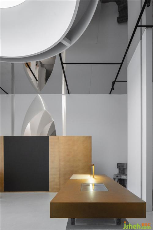 設(shè)計(jì)師在軟裝上精心設(shè)計(jì)出各種形態(tài)不一的異性家具以及燈飾,運(yùn)用碳黑色做出各種不同道具,搭配古銅色的亂紋不銹鋼,營(yíng)造出空間中的物件都因?yàn)樾请E碰撞而被燒焦了一樣。