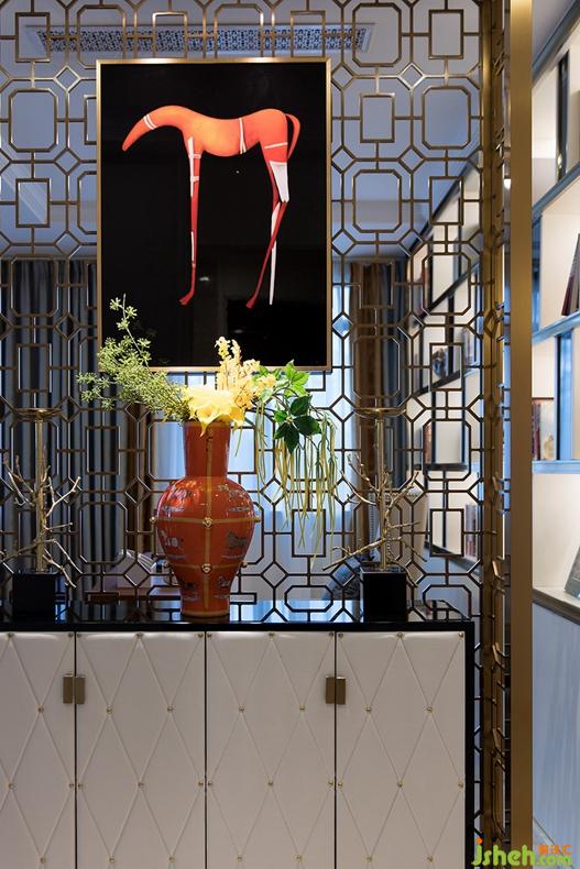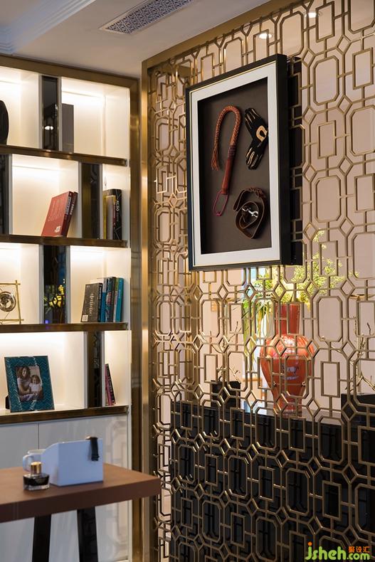 屏風(fēng)上的裝飾掛畫以愛馬仕主題為靈感,結(jié)合男主人對(duì)于賽馬運(yùn)動(dòng)的熱愛,提取品牌經(jīng)典元素——馬和馬具文化進(jìn)行創(chuàng)作,營造一個(gè)具有藝術(shù)氣息和獨(dú)特品味的書房空間。