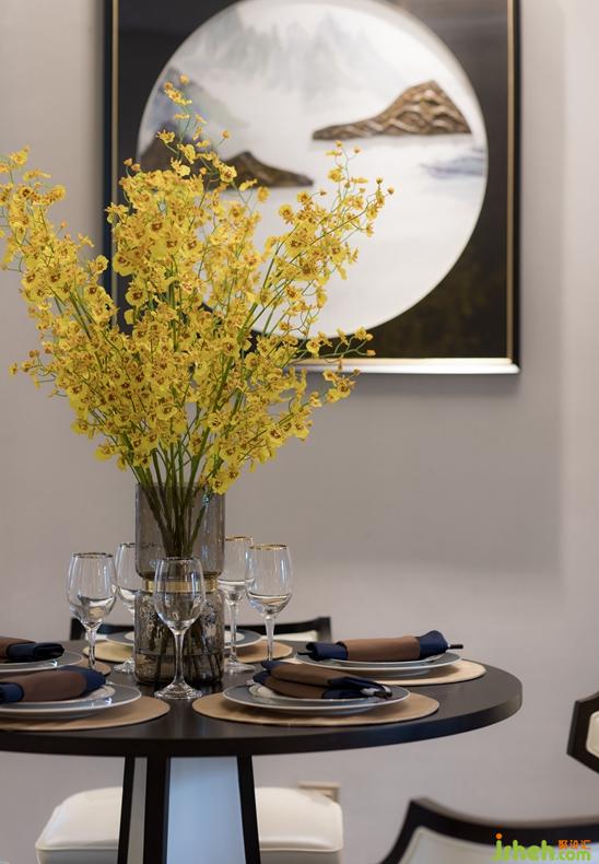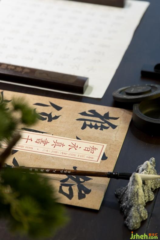 黛青色的點(diǎn)綴于空間隨處可見,墻上朦朧的遠(yuǎn)山含蓄而委婉,而那留白之處泛著清幽的燈光,更是給予人們無盡的想象。