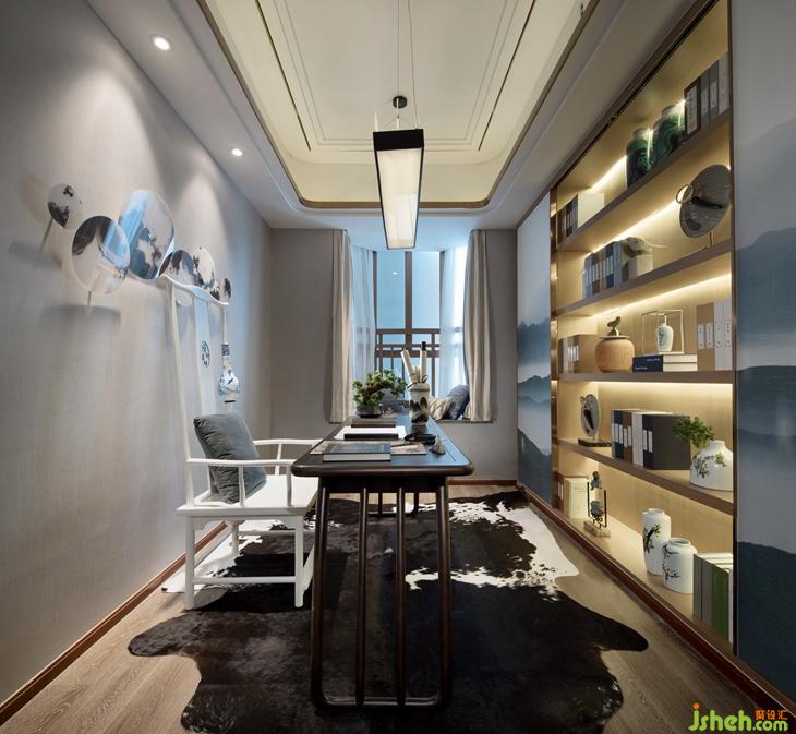 潑墨浸染的地毯鋪于木地板上,黑白之間蔓延幾分自由寫意,書卷文物的香氣彌漫在書房的每一個(gè)角落,靜靜品味這清閑雅致的獨(dú)處時(shí)光。