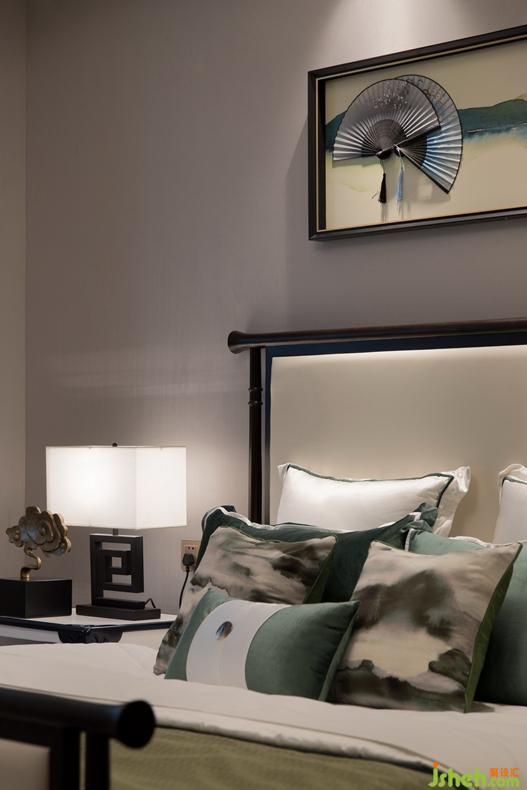 老人房整體空間散發(fā)出端莊素雅的迷人氣質(zhì),以橄欖綠、海軍藍(lán)搭配灰白色調(diào)凸顯東方自然樸素的格調(diào),訴說歲月靜好般的從容和優(yōu)雅。