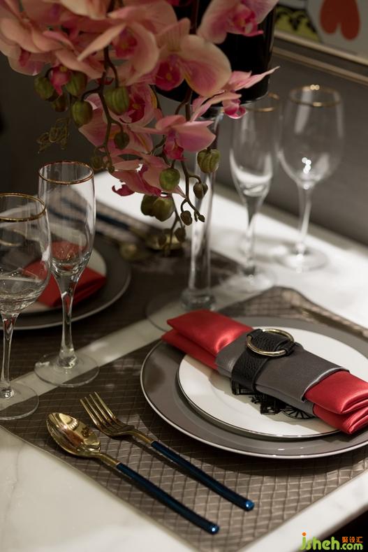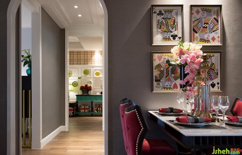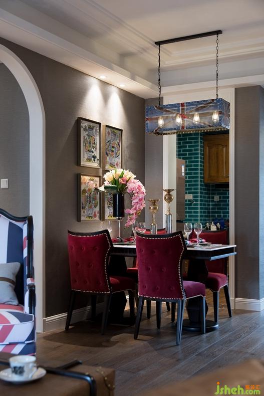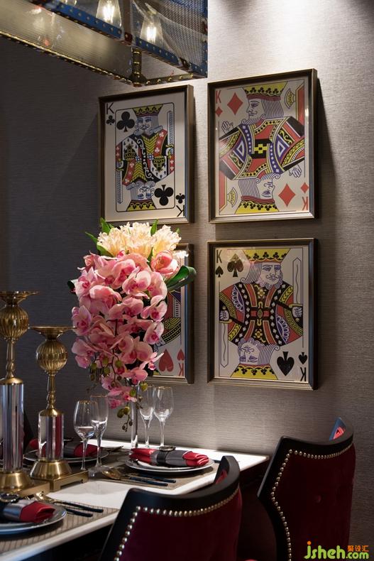 粉紅花瓣、高挑紅酒杯、米字旗吊燈、鉚釘沙發(fā)座椅、老K撲克牌掛畫……一場浪漫又充滿情調(diào)的燭光晚餐即將上演,氣氛優(yōu)雅而不失趣味。