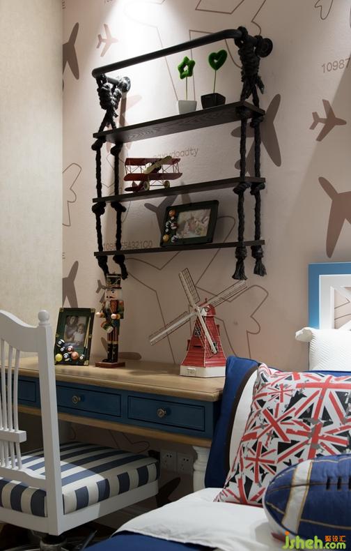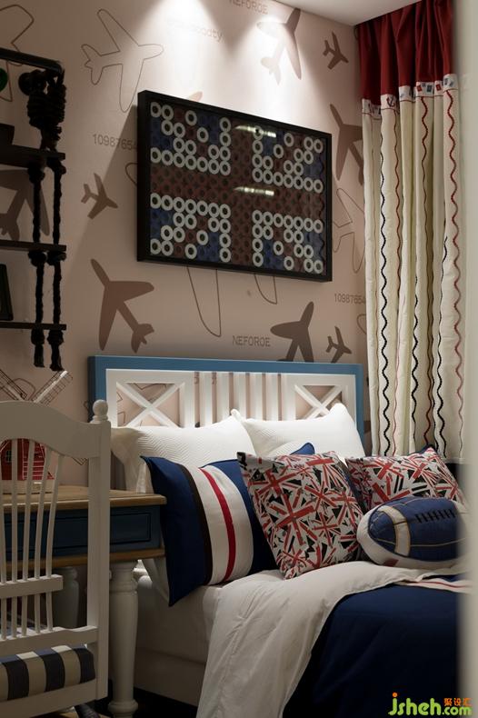對于小孩房,設(shè)計師注重營造一個充滿趣味性的舒適空間,融入了刻有飛機卡通圖案的墻紙、經(jīng)典米字旗元素的地毯和抱枕,還有各種有趣的飾品掛件。