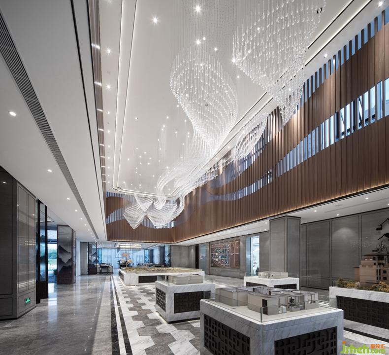 設(shè)計(jì)師融合地域獨(dú)有的生態(tài)和特色元素,打造蘊(yùn)藏人文藝術(shù)及記憶點(diǎn)的新中式風(fēng)格售樓處空間。設(shè)計(jì)師從地域文化中挖掘創(chuàng)意靈感,用心描繪內(nèi)在和外表的訴求,呈現(xiàn)充盈傳統(tǒng)中式氣質(zhì)和現(xiàn)代美學(xué)的獨(dú)特空間。