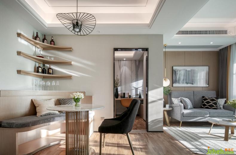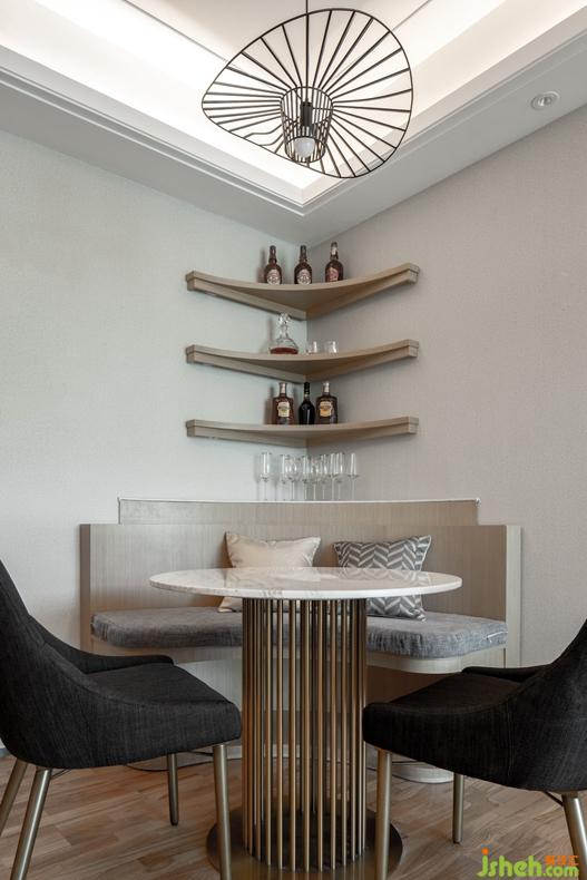 餐廳采用簡(jiǎn)約卡座設(shè)計(jì),不僅節(jié)省空間,同時(shí)具有收納功能,可用于儲(chǔ)物收藏。