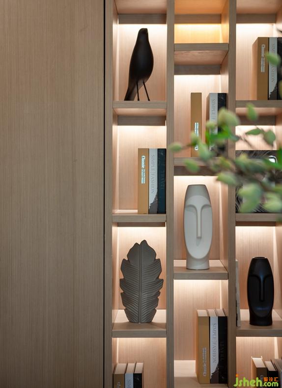 擺放有序的飾品,清新宜人的色調(diào),配合原木的質(zhì)感紋理,體現(xiàn)空間的干凈清爽。
