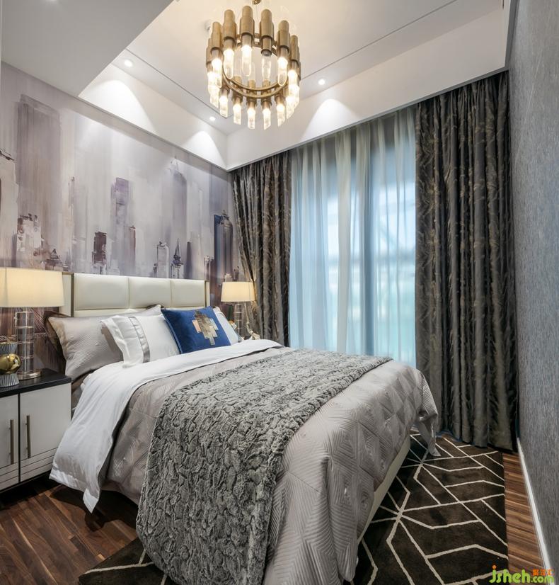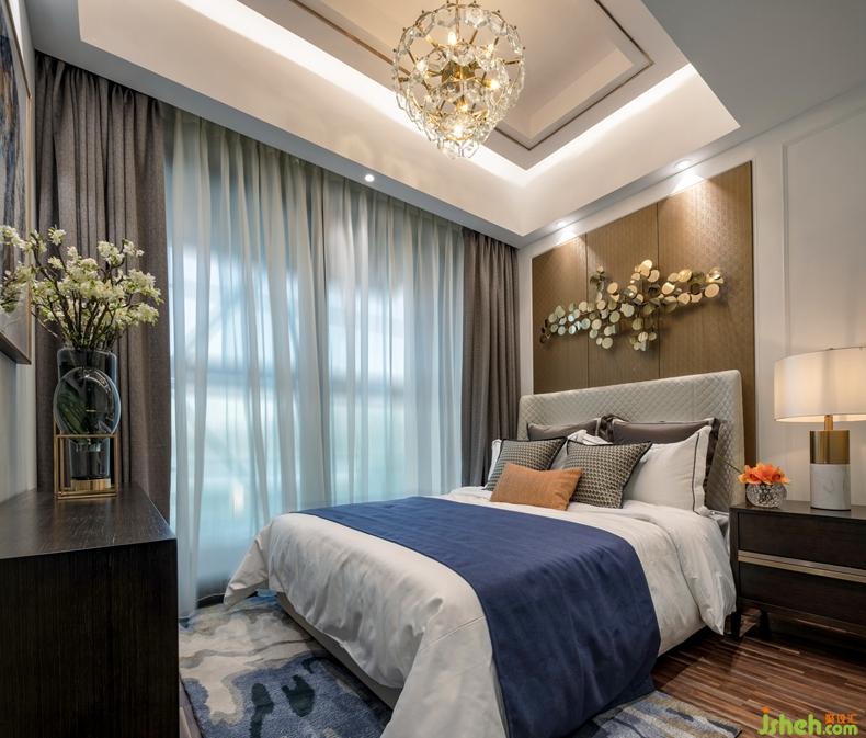 天花區(qū)域隱匿的暖色燈帶渲染慵懶輕松的氛圍,有利于營(yíng)造一個(gè)舒適的睡眠空間。