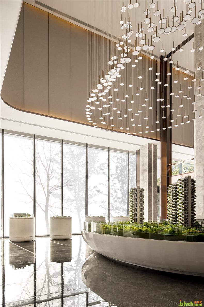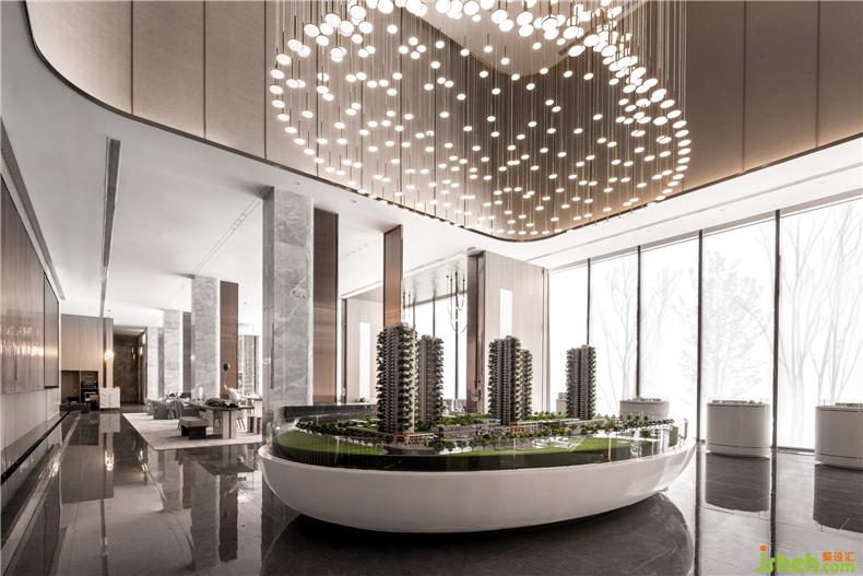 沙盤上方的藝術(shù)裝置,如揚起光輝的太陽,體現(xiàn)出典雅大方與現(xiàn)代藝術(shù)的和諧交融,訴說著整體空間的沉淀與輕盈,從大小漸變再到縱向排序,猶如皎若旭日,軒然霞舉,呈現(xiàn)標(biāo)桿之作。展現(xiàn)與城共筑美好,致敬領(lǐng)潮之城
