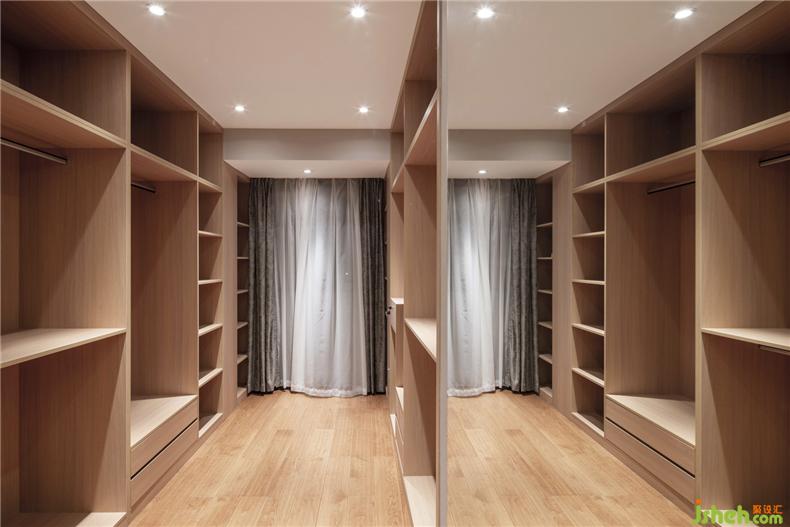 在主臥旁,單獨(dú)設(shè)置一個(gè)房間作為步入式衣帽間,私宅定制設(shè)計(jì)可以充分滿足儲(chǔ)物收納的需求
