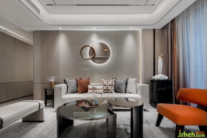 探尋萬物之間的平衡與自由。簡單卻不復(fù)雜的飾品從細(xì)節(jié)處打造空樣板房設(shè)計間的意境,樣板房軟裝設(shè)計以圓為設(shè)計元素的沙發(fā)背景裝飾與與同樣以圓形設(shè)計的金屬質(zhì)感茶幾相映襯,在空間里顯現(xiàn)出現(xiàn)代家居獨特的藝術(shù)靈性。