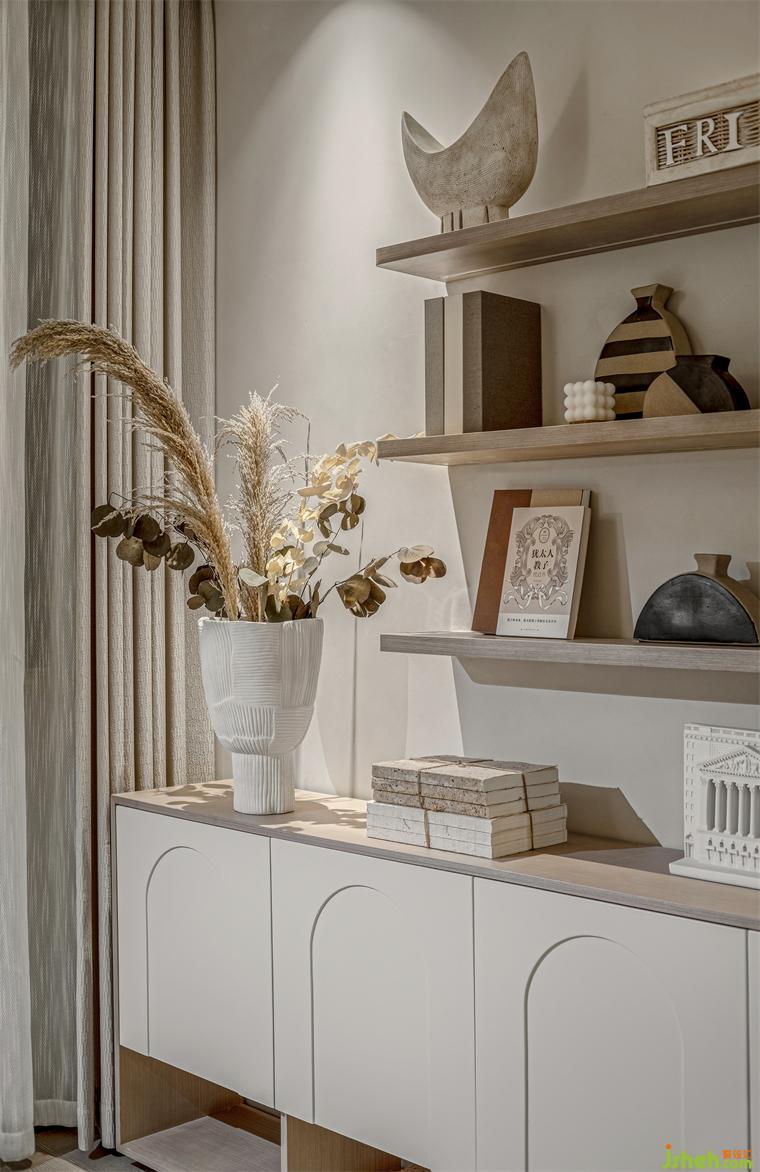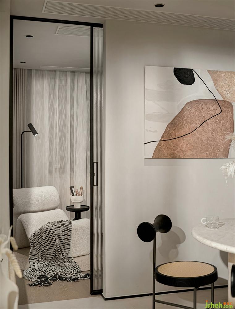 侘寂空間,便是在一個(gè)心靈療愈的空間內(nèi),從外界喧囂,轉(zhuǎn)化成內(nèi)里的煙火氣,即使樸素的設(shè)計(jì)細(xì)節(jié)卻也溫暖叢生。
