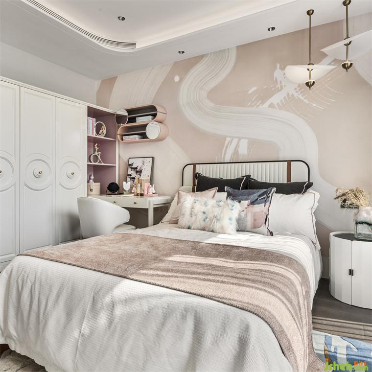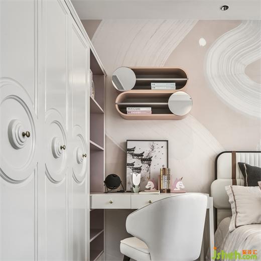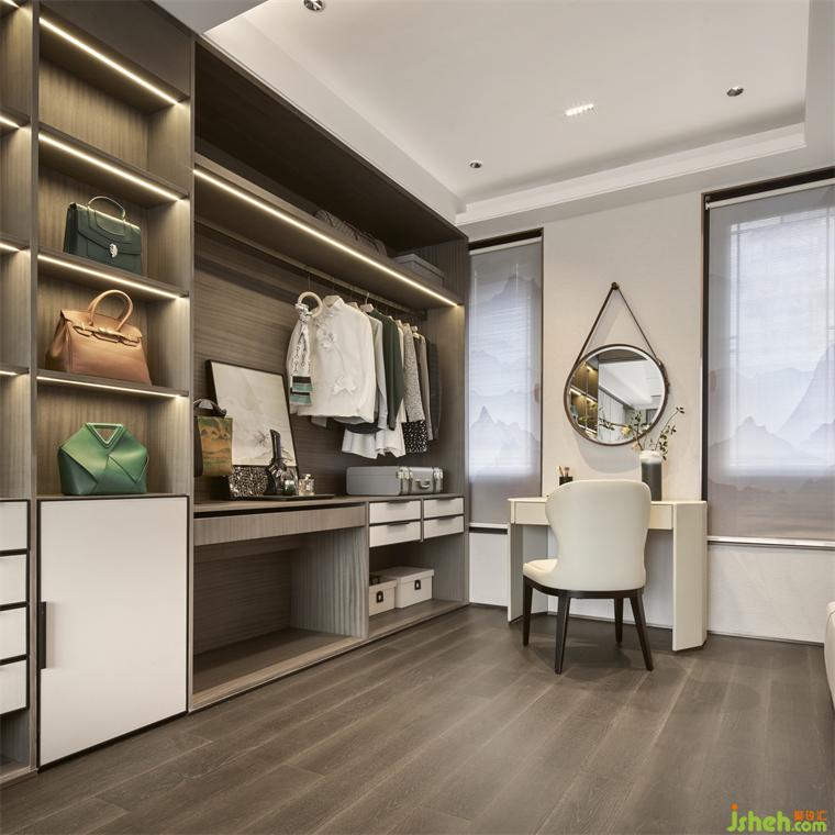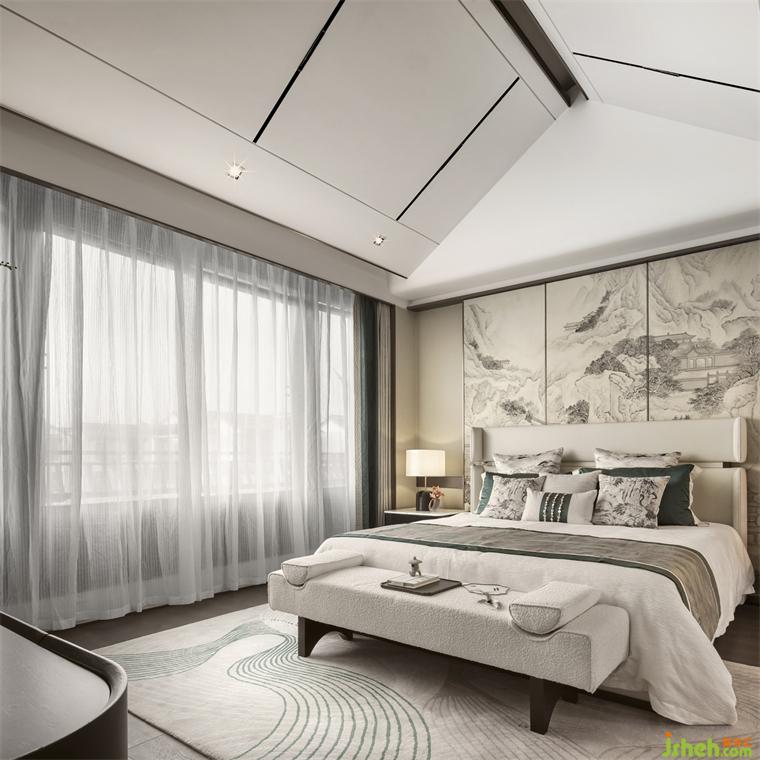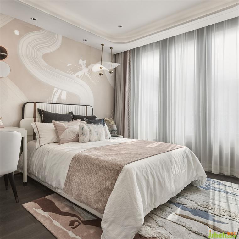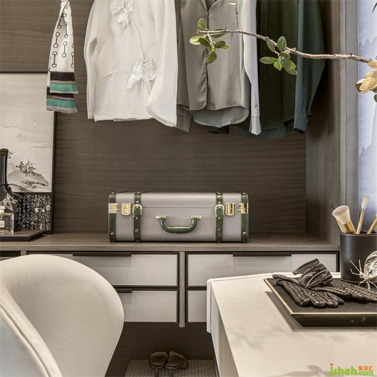 三樓主臥空間,藝術(shù)在這充當(dāng)著審美隱喻的角色,無(wú)形之中溝通著人與人的品位共鳴。別墅軟裝設(shè)計(jì)屋脊之下,繁雜之物被逐一剔除,空間中所余的皆是回歸本真的物象,雅灰調(diào)從休憩區(qū)蔓延至?xí)?、衣帽間,這讓主臥空間時(shí)常被一種經(jīng)典優(yōu)雅的氣質(zhì)所籠罩。