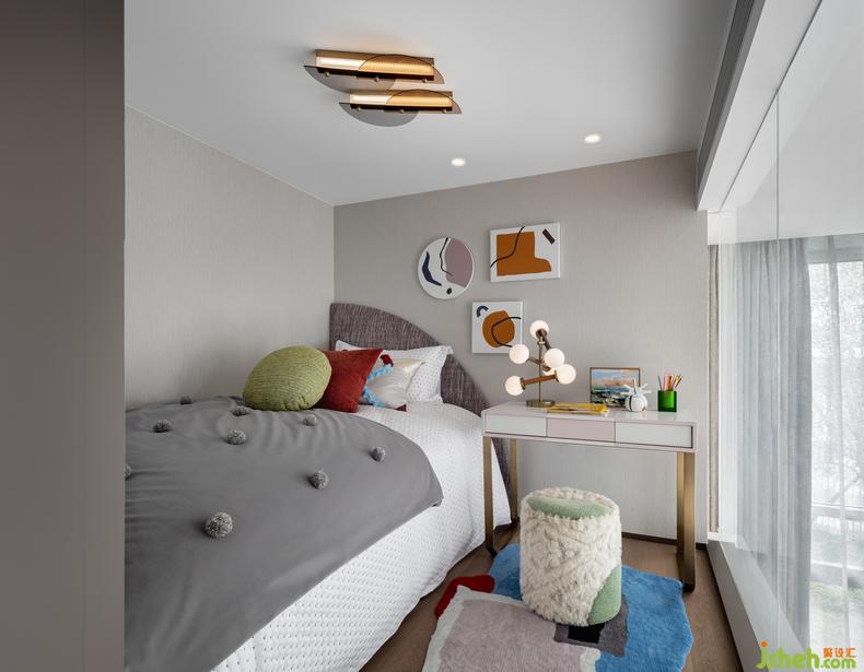 兒童房用簡練的設(shè)計(jì)手法凝結(jié)童趣與藝術(shù)并存的室內(nèi)空間。樣板房設(shè)計(jì)粉與白的交織、橙與藍(lán)的碰撞,逐漸升溫的存真理念緩緩沉淀,成長伴隨著毫不拘束的藝術(shù)空間,創(chuàng)造與審美藝術(shù)在此間蔓延。