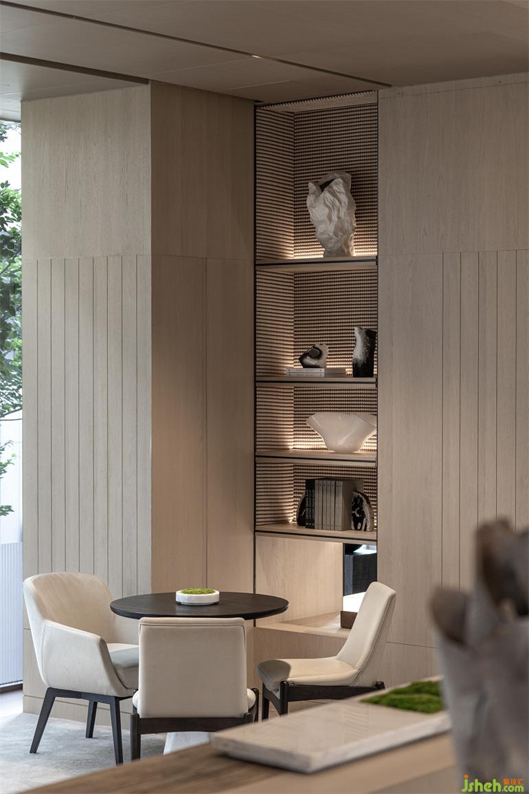 移步亦景,思緒,深圳營銷中心設計轉(zhuǎn)換 放空,沙發(fā)以完美的尺度關系,強化了空間的寧靜感受,在組于組之間釋放安全的社交距離,兼具私密與舒適度,靜坐觀景,享受片刻愜意。