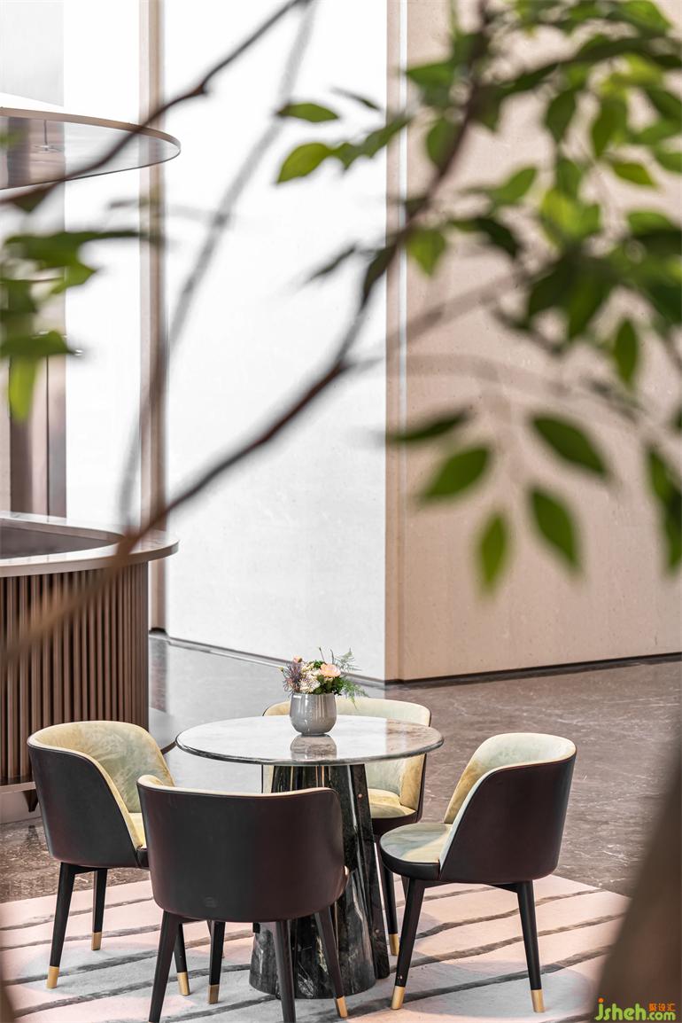 舒適大氣的進口原版家具BAXTER單椅,與普拉達綠的石材圓桌搭配,室內(nèi)設(shè)計師碰撞出一桌一椅,獨自成景,又相映成趣。