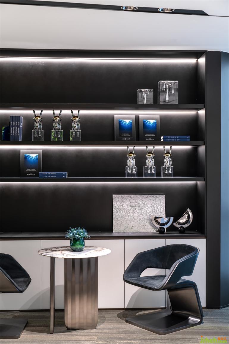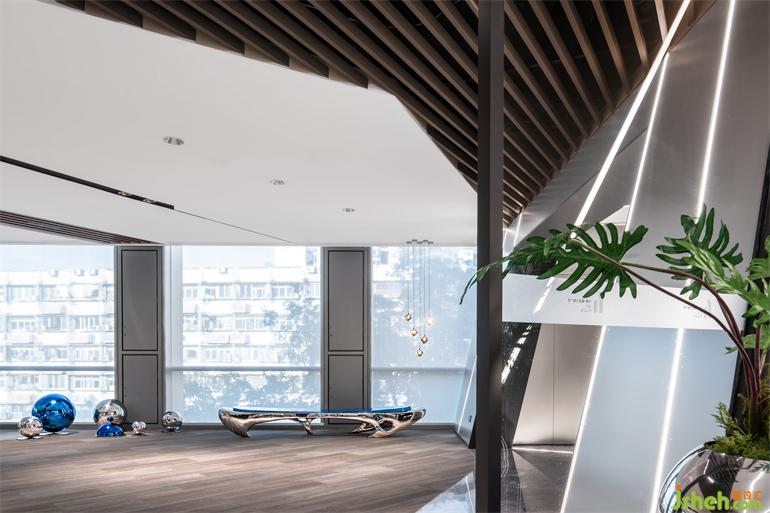 在空間中設(shè)置大面積的綠植墻,讓窗外的景觀及與室內(nèi)空間達成一種交互對話, 給予沉穩(wěn)的空間帶來一幕跳躍氣氛。