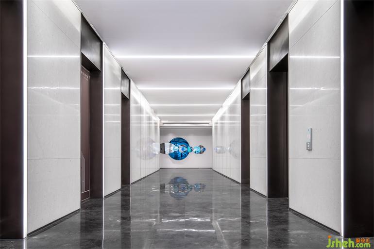 潔白靜謐的電梯廳,喚醒空間中每寸源于自然物象的超然聯(lián)想,仿佛要穿越星際般的時(shí)空隧道。