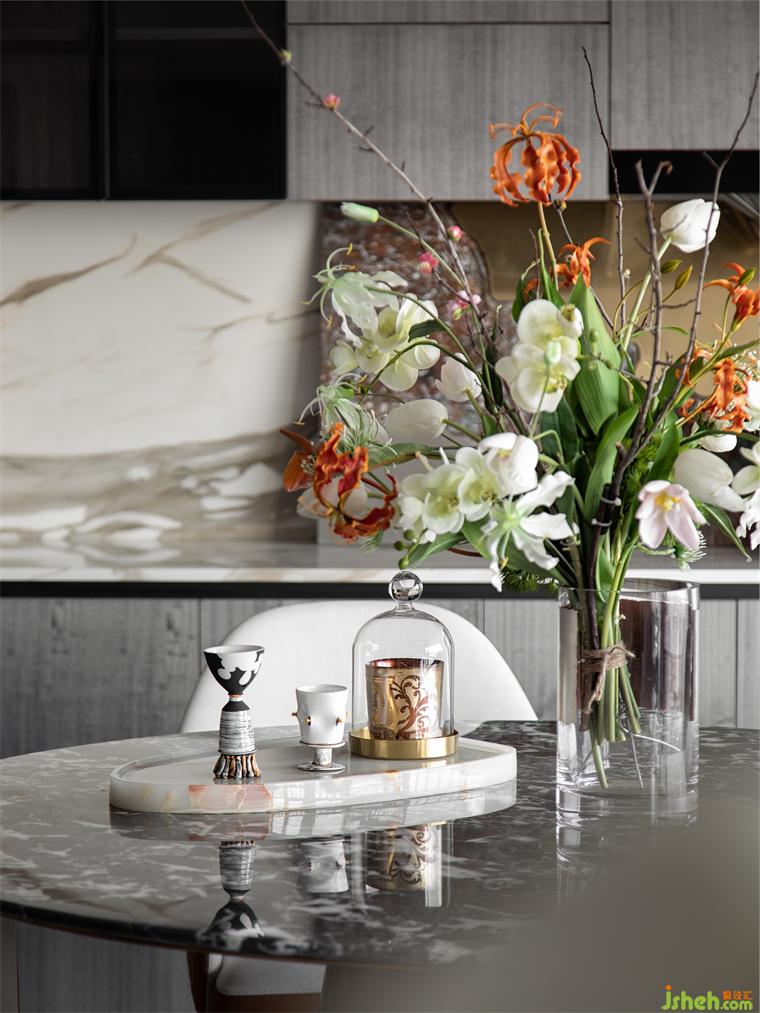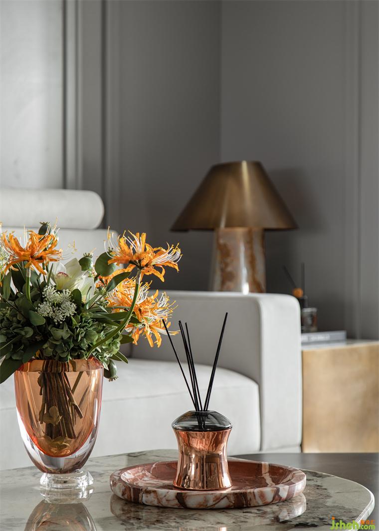 自然界的大理石通過藝術(shù)加工演變而成的燈具、樣板房設(shè)計西班牙藝術(shù)家ALBERTO BUSTOS的手工陶藝品、專業(yè)進口水晶品牌GLASS的水晶飾品、The Baobab非凡格調(diào)香薰,充滿靈性之美的藝術(shù)交匯,構(gòu)成了一個低調(diào)奢華且“獨一無二”的藝術(shù)空間。
