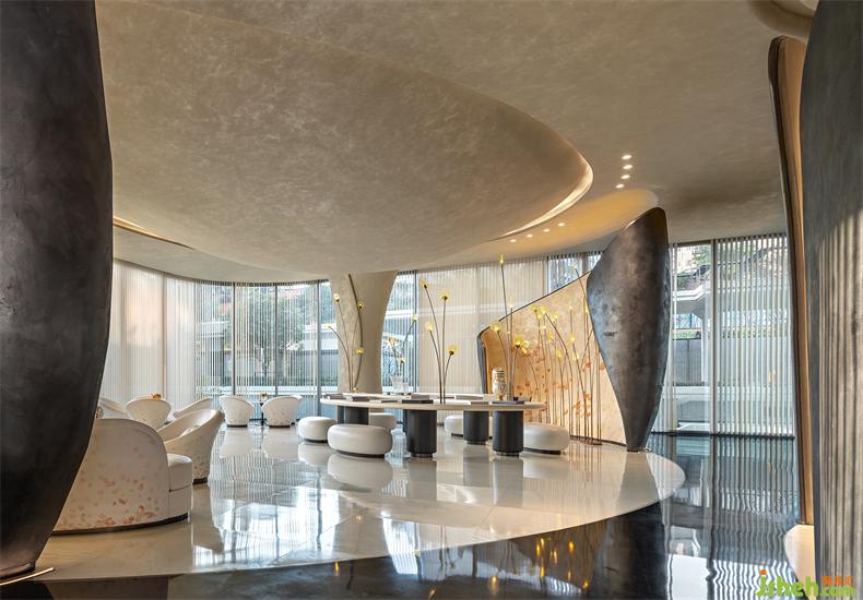昆明作為一個(gè)四季如春的花城,室內(nèi)設(shè)計(jì)師本案無論從建筑、景觀、還是室內(nèi),都希望可以與這座城市的性格氣質(zhì)共融。因此,我們把對繁花的想象融入空間布局與規(guī)劃,用一片片花瓣的形態(tài)藝術(shù)性的劃分區(qū)域,傳達(dá)出我們對于浪漫與詩意的理解。