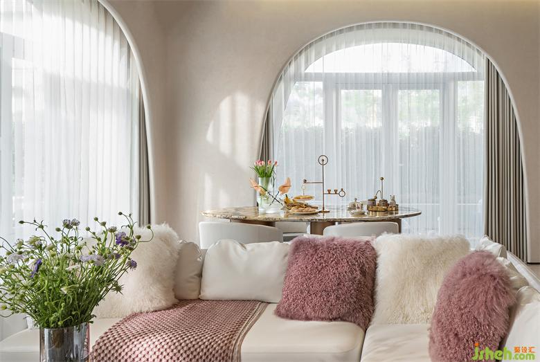 兩面墻的圓拱形玻璃門,將180度的自然景色引入,重慶樣板間設(shè)計(jì)俯仰之間的新鮮綠意替代了人們對(duì)于電子設(shè)備的依賴,在這里,你可以像“千尋”一樣的充滿活力、好奇、熱愛(ài)清風(fēng)與陽(yáng)光,對(duì)花花草草有著少女的想象,重新去感受陽(yáng)光灑下來(lái)的熱度。