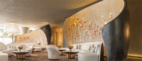 空曠洞穴的內(nèi)部,幾乎全是柔軟而美妙的波浪線條,售樓部設(shè)計(jì)形成一個(gè)扭曲虛幻的童話世界。天窗的光透過彩色玻璃,在天頂中心形成了一道富有魔力的漩渦,不可思議的曲線和波浪造型隨時(shí)都會(huì)旋轉(zhuǎn)起來。