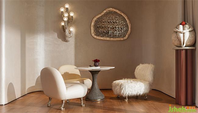 “悟空樓”的另一個(gè)區(qū)域,也延續(xù)了以往圓潤綿延的曲線。椅身各有性格,椅腿各有姿態(tài)。當(dāng)夕陽下降到地平線以下之后,椅子就會(huì)變回三個(gè)古靈精怪的小精靈,湊在一起交換訊息。