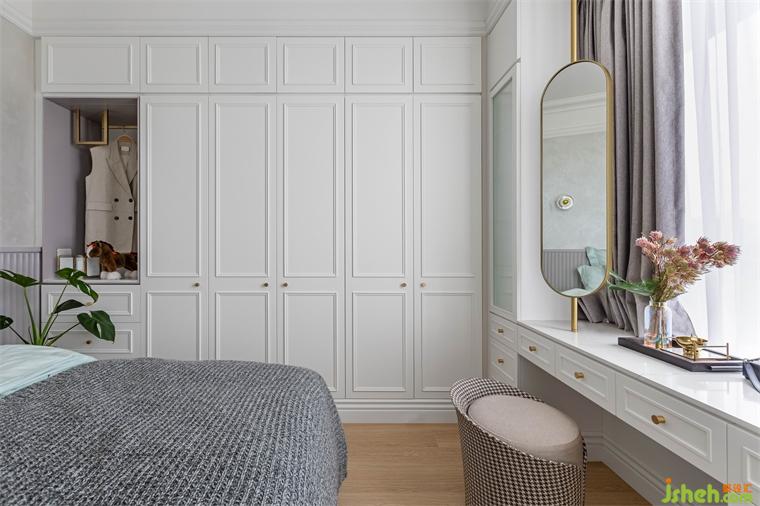 在室內(nèi)18坪的空間里,除了浴室是原有的建商隔間墻以外,兩房?jī)蓮d不但沒(méi)有使用傳統(tǒng)的隔間墻面,而是采用玻璃拉門(mén)結(jié)合木作造型柜體,家裝設(shè)計(jì)將收納最大化之外,同時(shí)也提供必要的隱私。客廳后方與更衣室的隔間,是表情豐富的柜體,一面是客廳展示柜,另一面是更衣室的掀床與衣物收納。面對(duì)單面的落地采光,避免阻礙光線隔斷,使用長(zhǎng)虹玻璃拉門(mén)創(chuàng)造出回字型動(dòng)線。