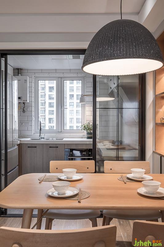 ▲廚房空間的東線充分滿足日常生活需要,全透明金屬玻璃移門,再采光上足夠保證白天的光線適度,而雙軌道四開門設(shè)計(jì)又能保證全屋南北向過(guò)堂風(fēng)的順暢。
