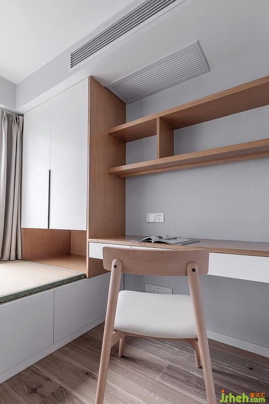 ▲書房榻榻米+衣柜+隔板書柜+書桌組合,榻榻米外側(cè)設(shè)計抽屜功能,可以不用拿掉墊子也能順手取出儲藏物品。衣柜的下留空設(shè)計,可以避免衣柜開門碰到柜子的尷尬,同時也能滿足高身高朋友的休息。