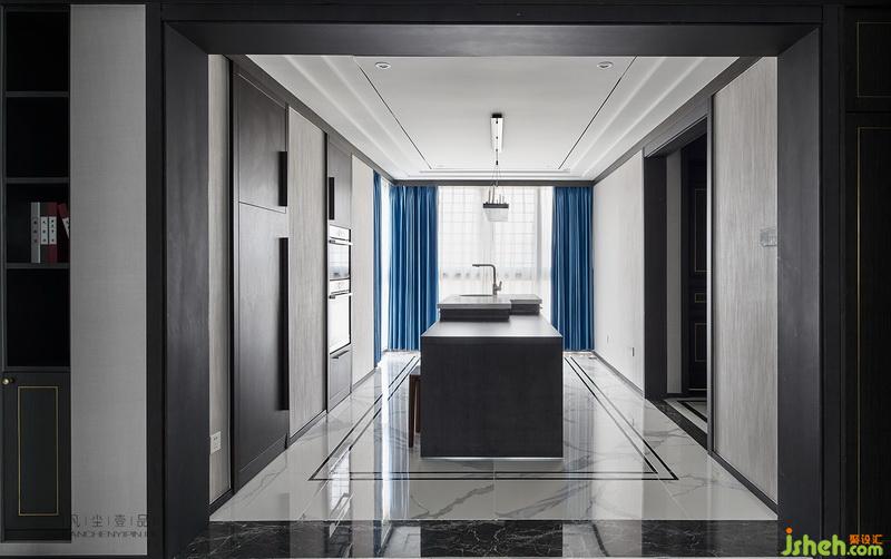 1到3層的回型樓梯設(shè)計,又恰到好處毗鄰全明落地窗,讓整個室內(nèi)空間和中庭豁然開朗,鋼化超白玻璃扶手,搭配黑白相間階梯,用現(xiàn)代氣質(zhì)硬裝意境之美,讓空間顯得更通透和闊達(dá),配合整面通高柜體,猶如一幅潑墨的山水畫卷,給人飄逸的東方韻味。
