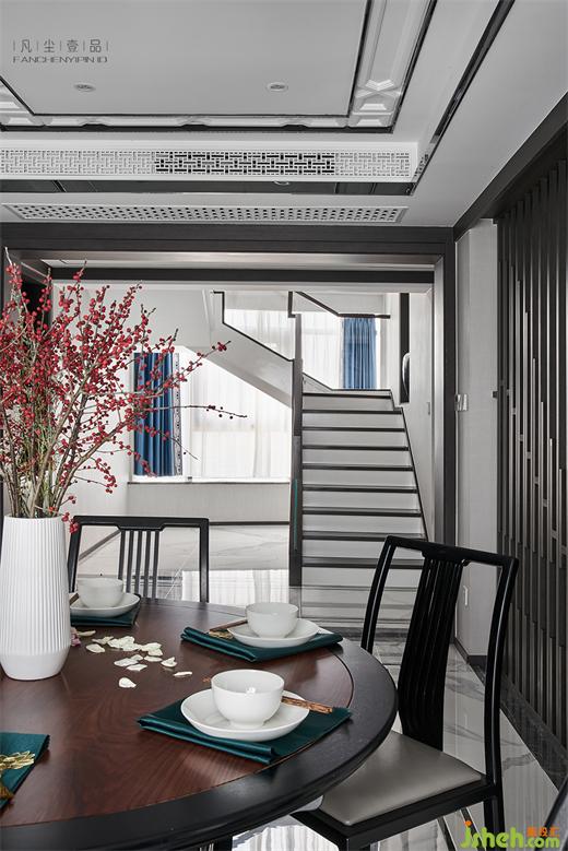 在中餐廳和客廳之間處理與業(yè)主商量并且討論過無數(shù)的方案 , 杭州臨安燕東園別墅裝修設(shè)計(jì)如何把空間疊層和通透做好,確實(shí)被PAS掉無數(shù)版的設(shè)計(jì)稿,最終的方案也是最初的方案 。