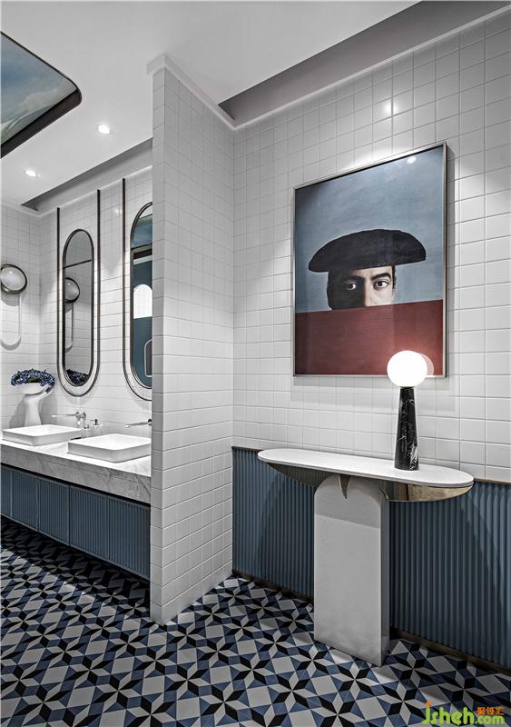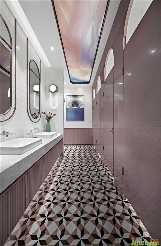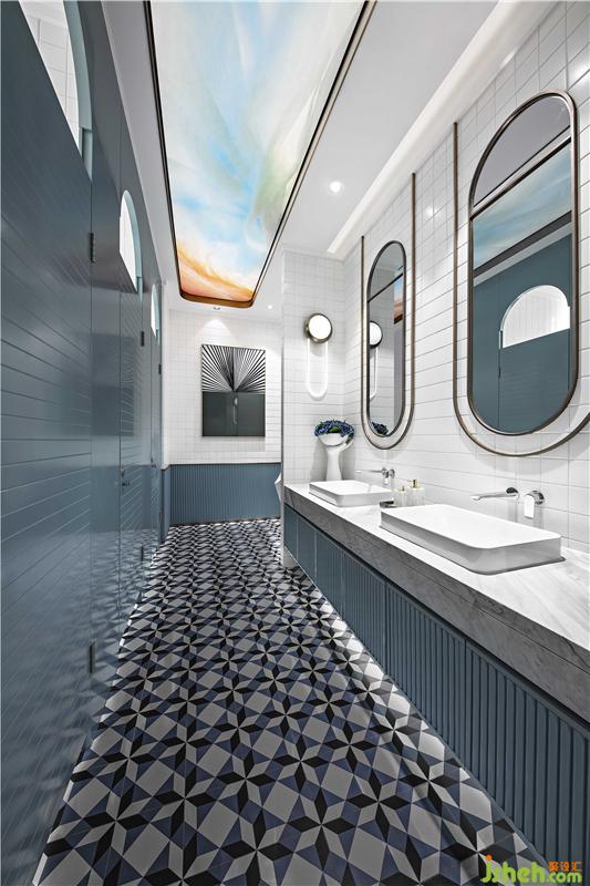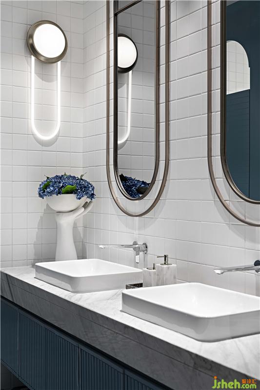 洗手間的折線運用達(dá)至高潮,直線、曲線、幾何體...各種形態(tài)的線條共處一室,以線、面、體的綜合形式進(jìn)行空間形態(tài)的表達(dá),從平面到立體自然轉(zhuǎn)化。大面積的純色色塊制造一種強烈的心理震撼力,營造張揚有力、現(xiàn)代時尚的空間意境。