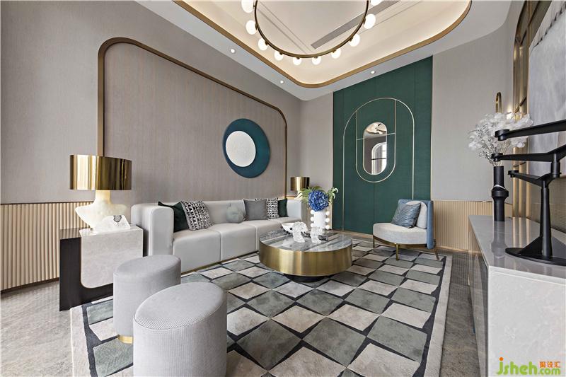 洽談區(qū)奶白的色調(diào)勾勒簡潔、寧謐的商談氛圍,翡翠綠與透明小水晶疊合而成的裝飾吊燈,星光點點,觥籌交錯。有序的線條適度糅合,豐富了空間的層次,浪漫感與文脈精神合為一體,增加空間的藝術(shù)感染力。