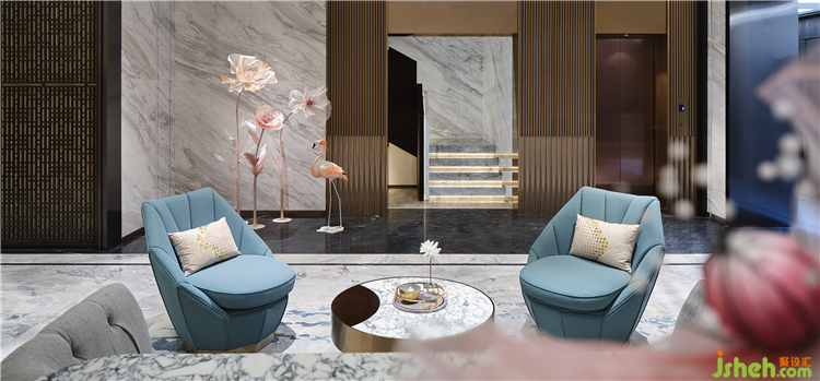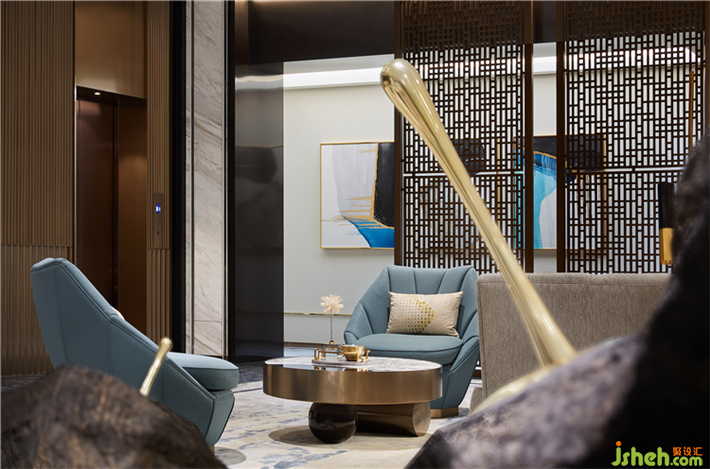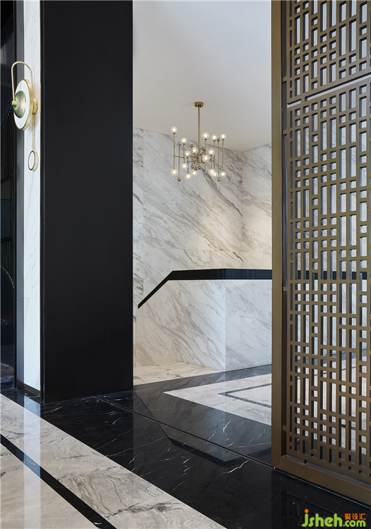 陽光與水徜徉共舞!滿盈盈的水面融化在馥郁的艷陽里,搖曳生姿,幾縷微醺的風(fēng)剛好吹進來,粼粼的水波將水面分隔成千變?nèi)f化的動態(tài)幾何圖形,設(shè)計師取其形,以更為立體的幾何構(gòu)圖,運用至空間設(shè)計,跳脫地描述了這Art Deco式的大都會藝術(shù)歲月。