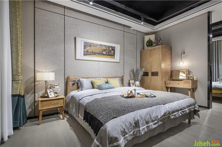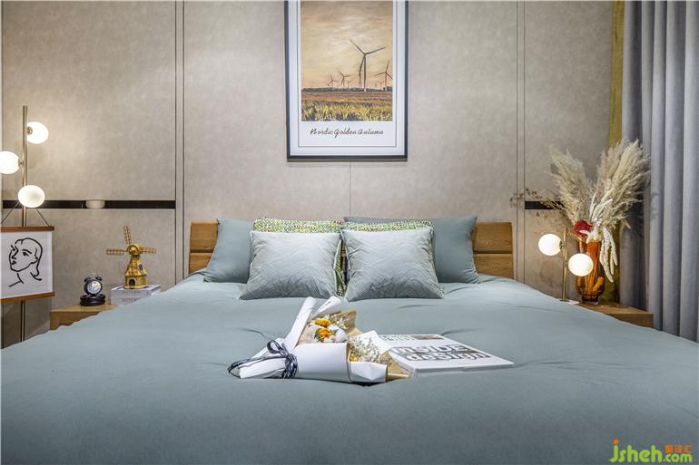 北歐金秋原創(chuàng)藝術(shù)地毯,白、綠、褐色相間,猶如俯瞰無(wú)垠的北歐山丘;精致細(xì)膩的設(shè)計(jì)理念鋪陳于空間每一個(gè)角落,展廳設(shè)計(jì)窗簾沿用靜逸的綠色與明朗的瑪雅黃配搭,營(yíng)造清新閑適的田園居住感。北歐金秋主題元素的運(yùn)用既大刀闊斧又細(xì)致入微,沙發(fā)抱枕以簡(jiǎn)潔的幾何造型圖案,配搭整個(gè)套系的主色調(diào)瑪雅黃與翡翠綠,與空間的整體童話意境相得益彰;主臥則包含床、床頭柜及梳妝臺(tái),簡(jiǎn)練質(zhì)樸的線條與原木色調(diào),氤氳靜謐恬淡的生活氛圍,天然的木質(zhì)紋理,觸手可及的自然溫度,打破居所與自然之間的隔閡。