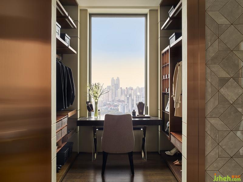 步入主臥套間,便可一覽城市天際線,兩側(cè)開敞式衣帽間,以虛實(shí)錯(cuò)落的自由姿態(tài),實(shí)現(xiàn)合理分格且各異其趣,對(duì)至高品位的追求正顯露于此。