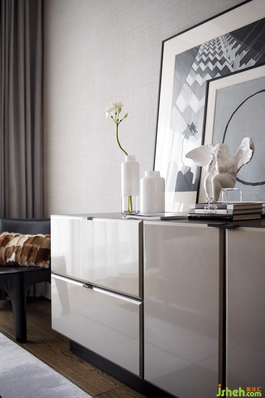 次臥在淡雅的灰色調(diào)中釋放活力,透過一角的裝飾畫與擺件陳列,高低錯(cuò)落的秩序間盡顯藝術(shù)氛圍。