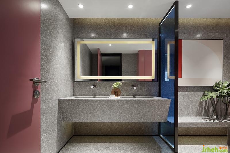 設(shè)計(jì)師對(duì)于選材極為克制,衛(wèi)生間仍采用水磨石呈現(xiàn)簡(jiǎn)潔基底,與其他元素結(jié)合也相映成趣,在質(zhì)感上顯得樸實(shí)且干練。