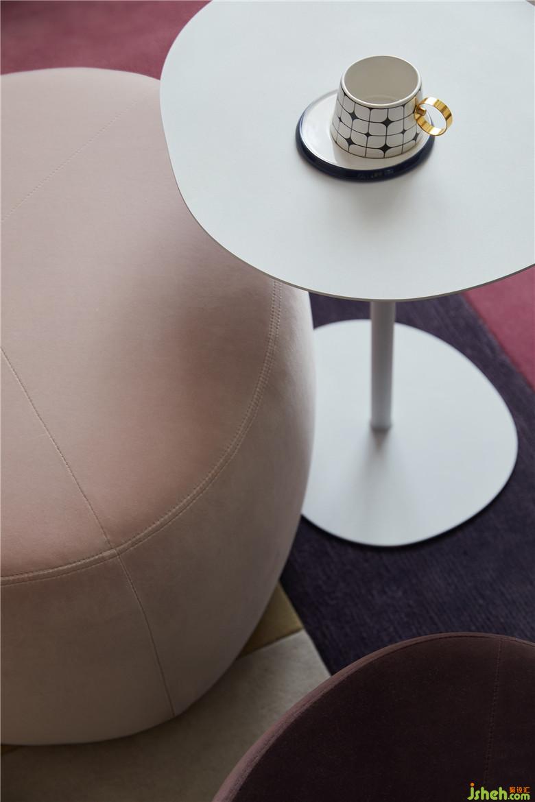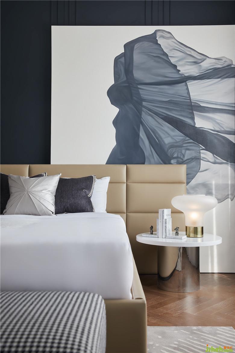 兩側床頭柜,呈現(xiàn)方中有圓、圓中有方的組合形態(tài),配合輕盈、神秘氣質的畫作,讓一抹優(yōu)雅回蕩其間。