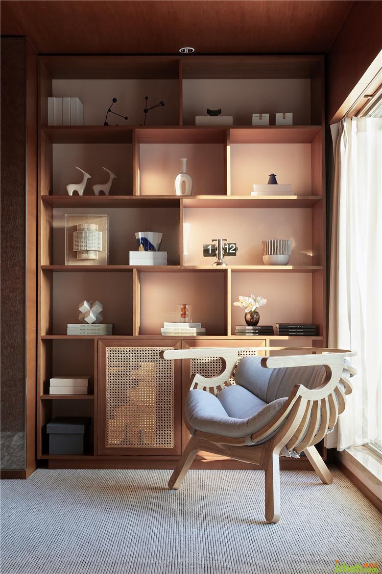 學(xué)習(xí)不再是苦悶的體驗(yàn),孩子房入口處的端景由原先一把椅子、一幅畫的單調(diào)區(qū)域擴(kuò)展成了一個(gè)舒緩的閱讀空間。慵懶的午后半躺在造型感顯著、舒適度絕佳的單椅上,思緒則遨游在書海中,“學(xué)”也在不知不覺中進(jìn)行著。