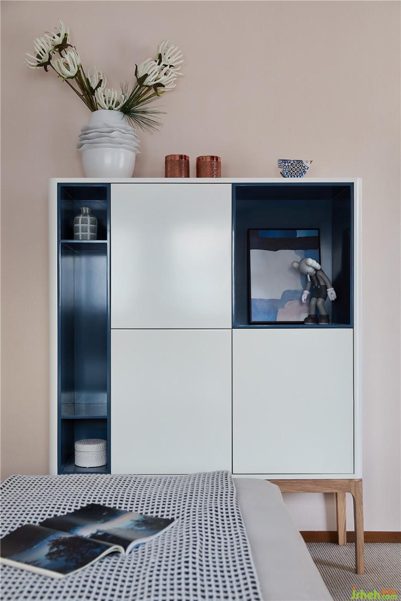 臥室同樣蔓延著清新的氣息,以素色的壁紙取代床背的大面鏡子,剔除繁復(fù)的裝飾,用淡雅的藍(lán)與生機(jī)的綠作點(diǎn)綴,平和靜謐與活潑趣味共存,亦是對(duì)孩童心性的陶冶。