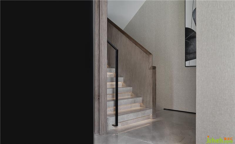 樓梯間一縷縷線條演繹著場域的關(guān)聯(lián)與獨(dú)立,巧妙的懸浮狀扶手,彰顯功能、美感與工藝的有效結(jié)合。拾階而上的每一步,都能感受到流瀉的光影之美,便捷的電梯與之相望而設(shè)。