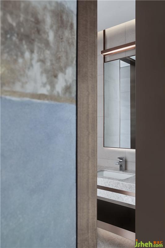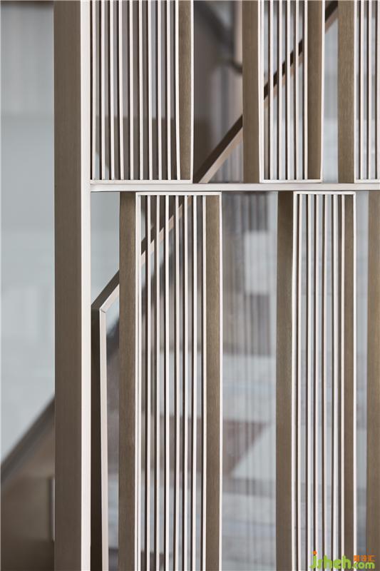 金屬格柵將樓梯與客廳聯(lián)動(dòng)起來,既有一定的韻律節(jié)奏,又并非完全規(guī)整的形式,在靈動(dòng)與透氣的布局中,凸顯了樓梯主體的雕塑美感。又因材質(zhì)的延續(xù)、疊加使用,釋放出精簡(jiǎn)純粹的張力。樣板房設(shè)計(jì)
