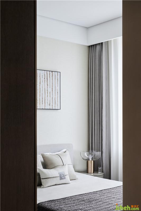 客臥作為私密區(qū)域,置于入戶玄關(guān)另一側(cè),以素雅與舒適妝點(diǎn),自成一景。樣板房設(shè)計(jì)