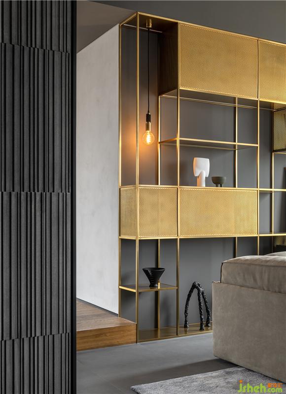 壁爐的焰火在黑色金屬材質(zhì)的映襯下,保持純粹格調(diào)的同時,亦為客廳注入了一股自在活力。剛與柔、動與靜皆于此上演。