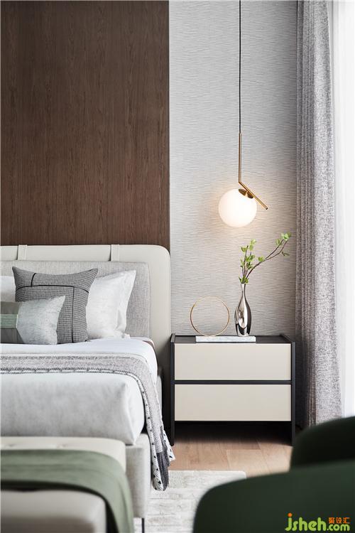 溫潤的木與柔和的米色調(diào)鋪陳主臥睡眠區(qū),散發(fā)出一種雅致溫馨的韻味,藉由皮革、布藝與木質(zhì)自如融合,予人安心怡然之感。復(fù)式裝修設(shè)計